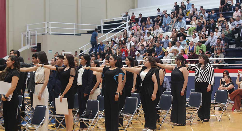 Los más de 70 egresados de las Licenciaturas en Derecho, Negocios Internacionales, Contaduría Pública, Psicología, Gestión y Operación de Servicios Gastronómicos, Turismo de Negocios, Mercadotecnia Estratégica, Ingeniería en Automatización y Control Industrial, Ingeniería Industrial, Entrenamiento Deportivo y Administración de Negocios, recibieron su anhelado título de las manos de la Honorable Mesa de Honor. Sin olvidar, que todos ellos tomaron Protesta en un Acto tan Simbólico, en el que hicieron la Promesa de cumplir los deberes propios de su profesión, dirigido por el Dr. Enrique Alejandro González Álvarez.