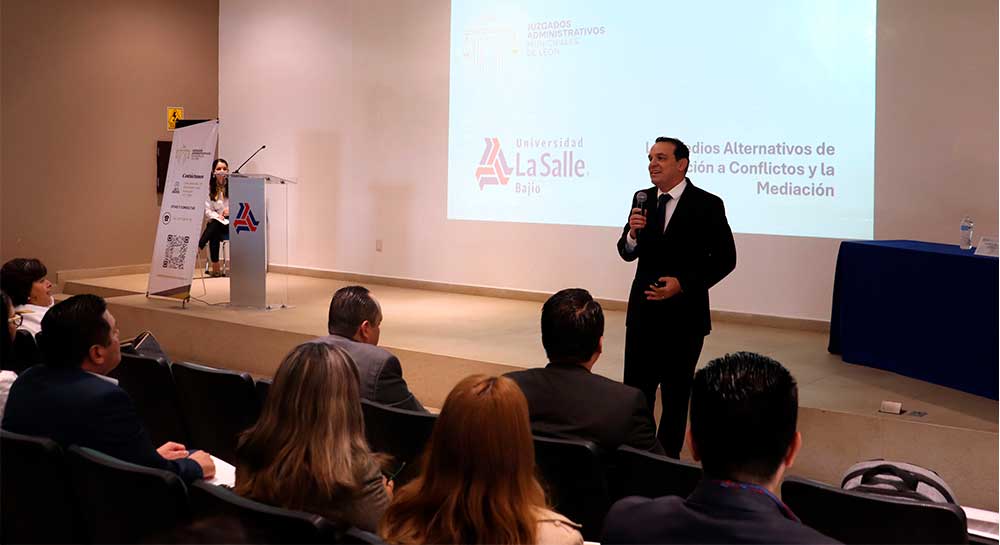El Campus Campestre de la Universidad La Salle Bajío fue sede de la Segunda Jornada de Justicia Administrativa Municipal, cuyo tema principal fue “La Mediación en el Proceso Administrativo”; durante dos días, estudiantado de licenciatura y maestría, claustro docente de la Facultad de Derecho, así como colaboradores y colaboradoras de los Juzgados Administrativos Municipales, escucharon a profesionales expertos en el tema.