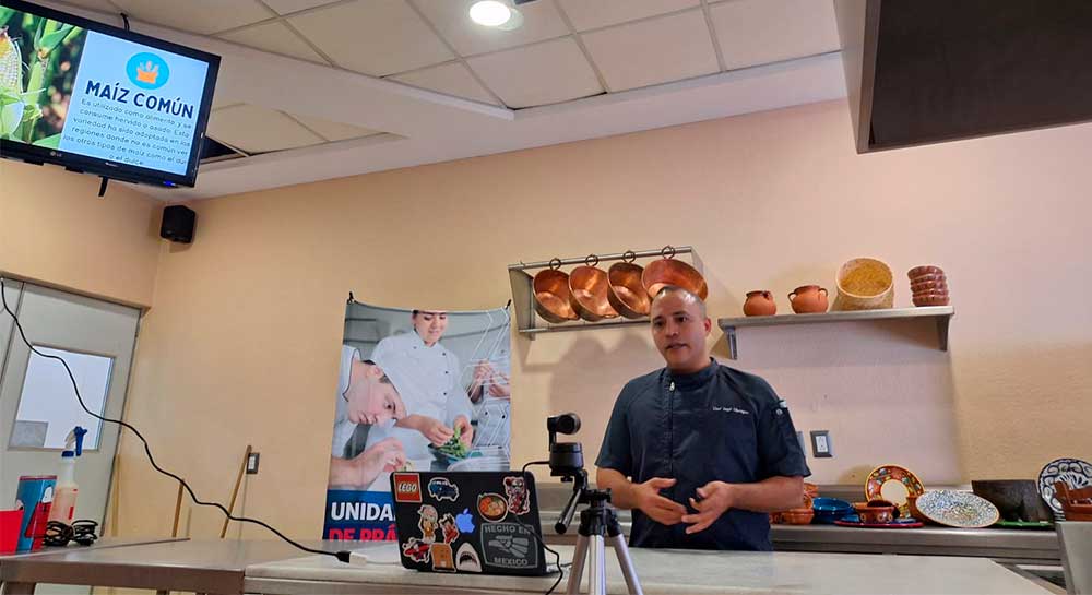 El chef Jorge Obregón de la Facultad de Turismo y Gastronomía de la Universidad La Salle Bajío impartió el Taller Virtual de Cocina Mexicana con Maíz al estudiantado de la Universidad Autónoma de Bucaramanga en Colombia.
