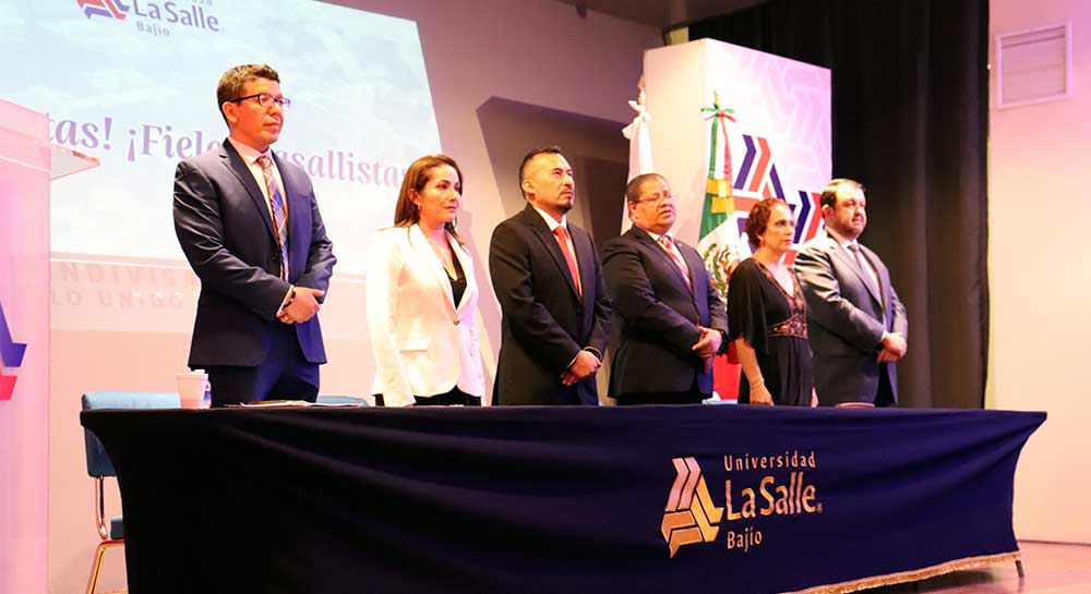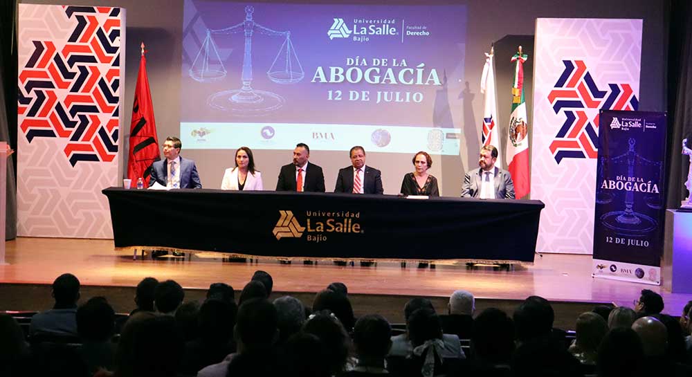 La Universidad La Salle Bajío fue sede de la celebración conjunta del Día de la Abogacía que se conmemora este mes de julio. Para ello, se dieron cita en el Aula Magna del Campus Campestre la Comunidad Universitaria de la Facultad de Derecho, miembros de la Asociación Nacional de Magistrados de Circuito, Jueces de Distrito del Poder Judicial de la Federación, la Barra Mexicana de Abogados Capítulo Guanajuato y el Colegio de Abogados de León.