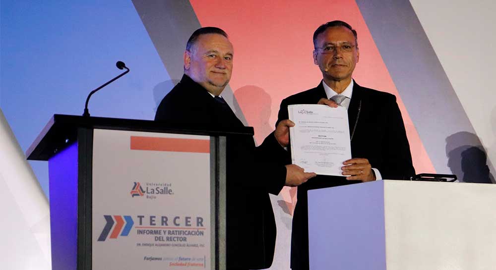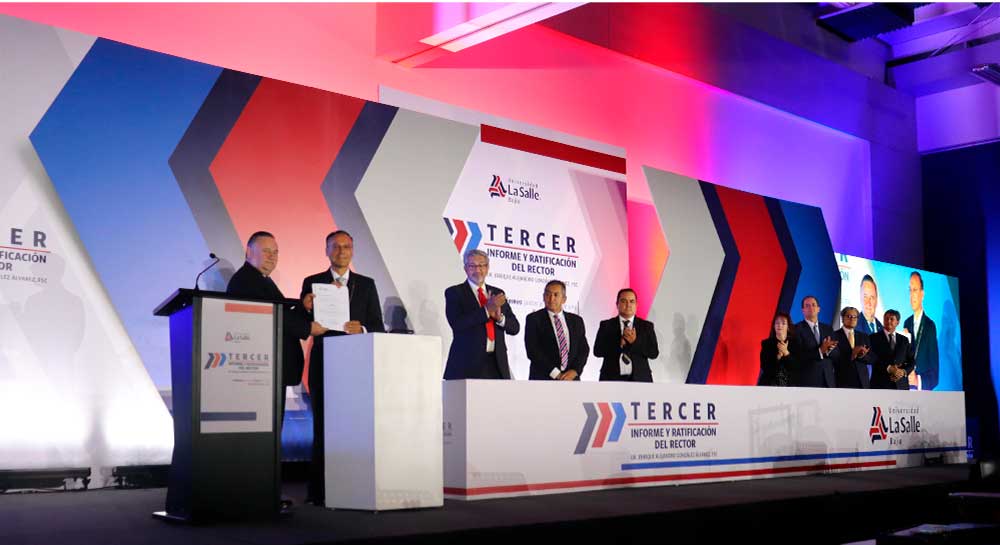 ceremonia del Tercer Informe del Rector, celebrada en el Parque de Innovación La Salle Bajío, donde se dieron a conocer a la Comunidad Lasallista e invitados especiales los