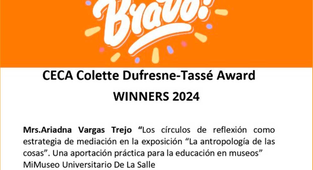 Ariadna Vargas Trejo, Responsable de Curaduría y Comunicación Educativa de Mi Museo Universitario La Salle Bajío fue acreedora del premio de investigación Colette Dufresne-Tassé por su proyecto Los Círculos de Reflexión como Estrategia de Mediación en la Exposición “La Antropología de las Cosas”.