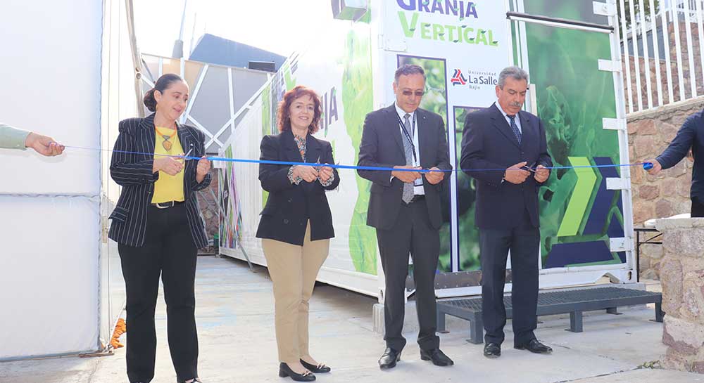 La Universidad La Salle Bajío, inauguró su nueva granja vertical, un espacio destinado al aprendizaje, la investigación e innovación en producción de alimentos. Se trata de un espacio de 30 metros cuadrados dentro de un contenedor de carga de 40 pies, capaz de producir, por medio de un sistema de hidroponía vertical automatizado, 200 veces más vegetales por metro cuadrado, en cualquier clima, región o temporada del año y con el ahorro de hasta 90% de agua que en el método de agricultura tradicional.