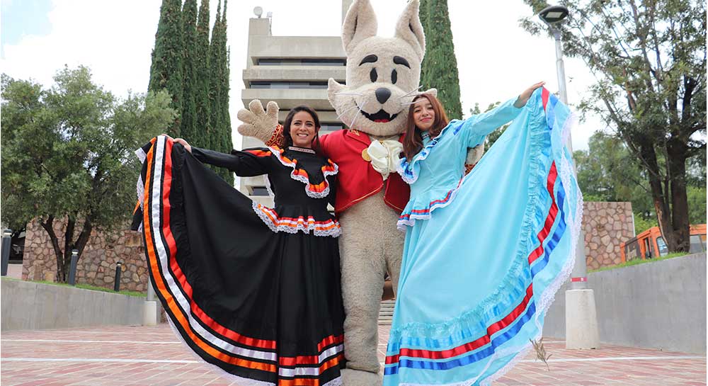 Alrededor del mediodía del jueves 12 de septiembre, la Plaza Centenario comenzó a pintarse de verde, blanco y rojo; con sombreros, sarapes, faldas folclóricas y moños patrios acudían algunos de los asistentes que se alistaban para iniciar el recorrido hacia la entrada principal del campus.