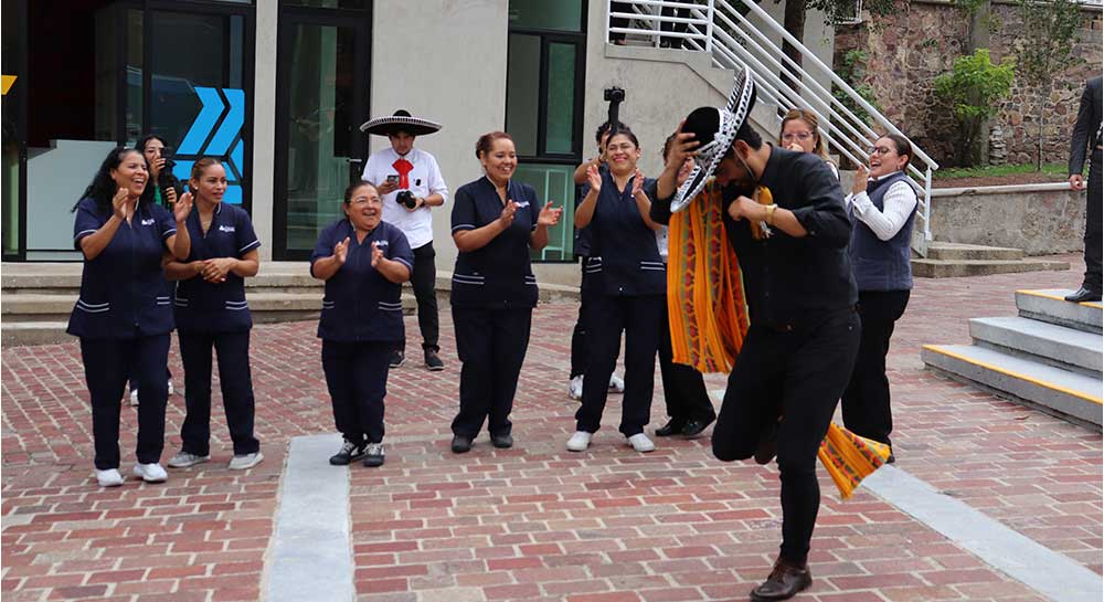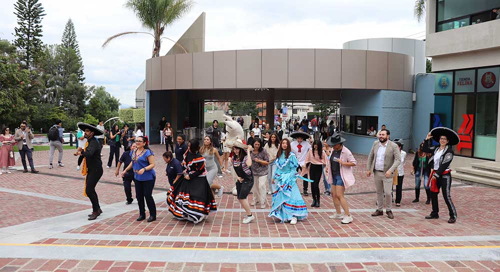Con la alegría y la fraternidad del carisma lasaliano, las escalinatas de la torre de Rectoría se convirtieron en una pista de baile donde nuestra mascota Felino sacó sus mejores pasos.