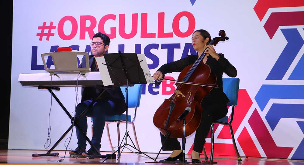 Para amenizar la ceremonia, el Dúo Ponce- Melgar interpretó piezas del repertorio contemporáneo como Perfect, de Ed Sheeran; City of stars, de Justin Hurwitz; y, Viva la vida, de Chris Martin.