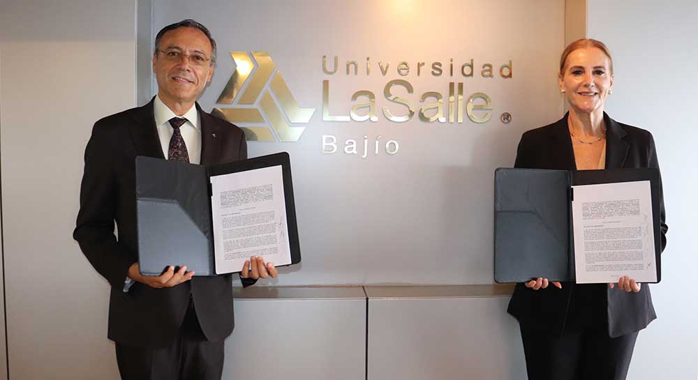 La Universidad La Salle Bajío y el Tribunal Estatal Electoral de Guanajuato (TEEG) firmaron un convenio de colaboración en el que se busca fortalecer la colaboración entre las partes, a fin de llevar a cabo acciones de capacitación, investigación y difusión en materia electoral, así como la prestación del servicio social y prácticas profesionales.