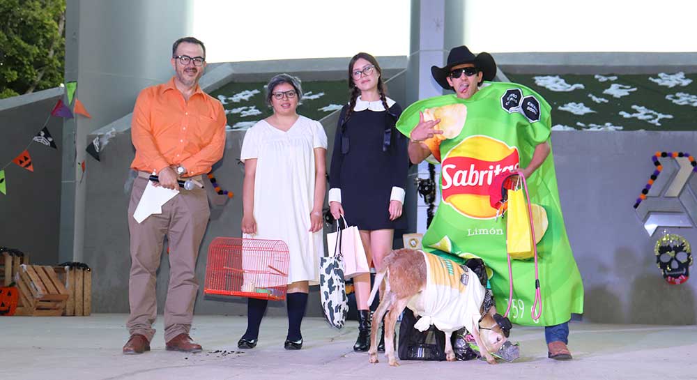 En la categoría de mascotas no convencionales el tercer lugar fue para el disfraz de Sabritas y su borrego de salsa picante; el segundo, fue para la Abuelita de Piolín; y, el tercero, para Merlina y su conejo.