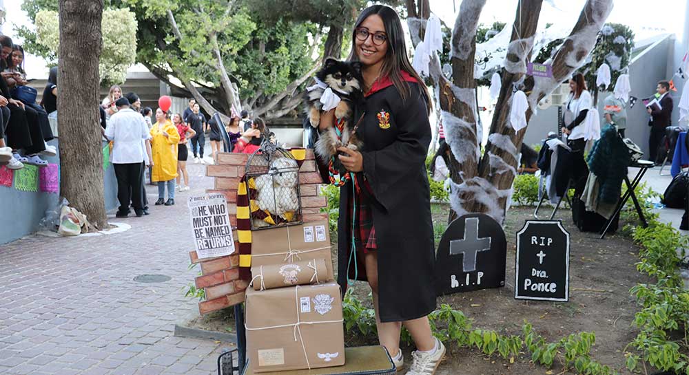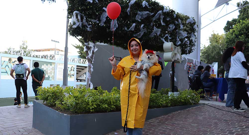 Catrinas, dinosaurios, calaveras, botanas y hasta Harry Potter desfilaron por la Velaria San Juan Bautista De La Salle en el concurso de disfraces Perrorífico 2024, organizado por la Facultad de Veterinaria. Alrededor de 30 estudiantes y sus mascotas presentaron espeluznantes y divertidos atuendos.