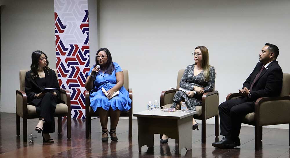 Asimismo, en el conversatorio “Caso Taylor Swift: un reflejo de la violencia digital de género”, la Dra. Rocío Guadalupe Quiñones Andrade, la Mtra. Gabriela Naranjo Guevara y el Mtro. Mario Elyut Velázquez Prado explicaron a la asistencia qué es la