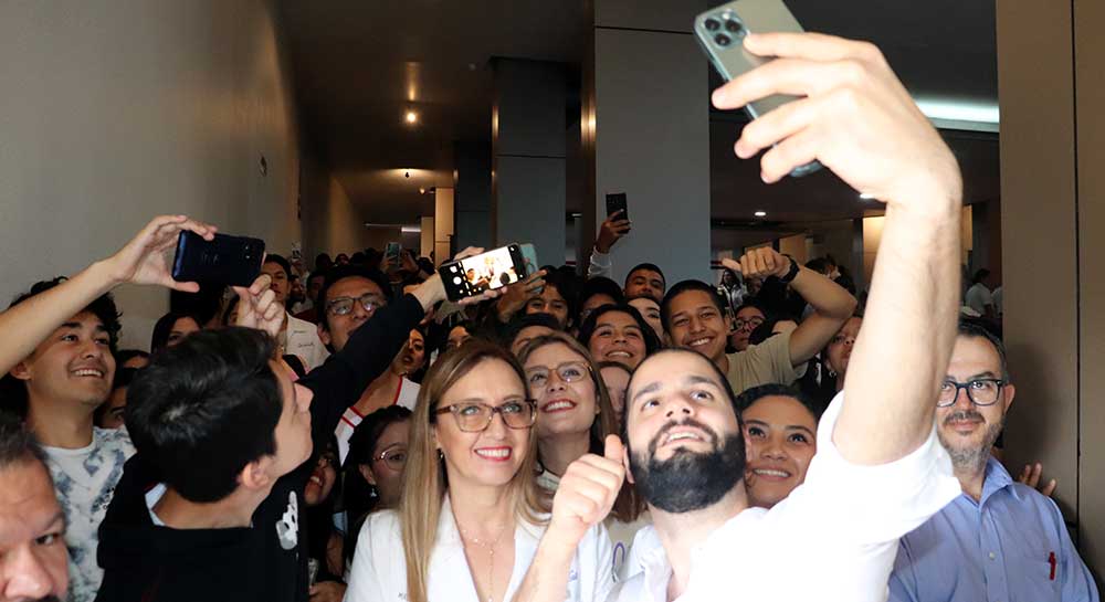 La comunidad universitaria aprovechó la ocasión para tomarse fotografías con el famoso creador digital, quien en todo momento se mostró amable y entusiasta con las muestras de cariño.
