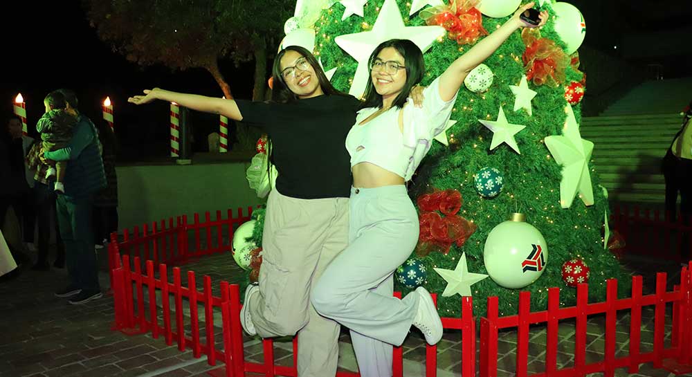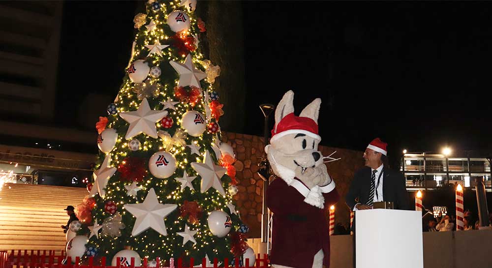Una noche mágica llena de luces, música, baile y diversión en un ambiente fraterno, fue lo que se vivió en el Encendido del árbol navideño, de la Universidad La Salle Bajío Campus Campestre.