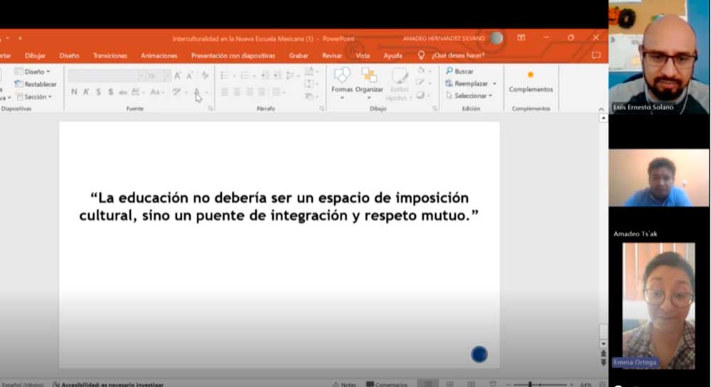 Por otra parte, el Dr. Hernández Silvano explicó los retos y las problemáticas que ha enfrentado el pueblo tzeltal en Chiapas ante la Nueva Escuela Mexicana (NEM), pues el rezago educativo aún es altamente marcado. En la era postpandémica, muchos infantes no saben leer ni escribir, por lo que este sistema no logra ajustarse a las necesidades de este pueblo.