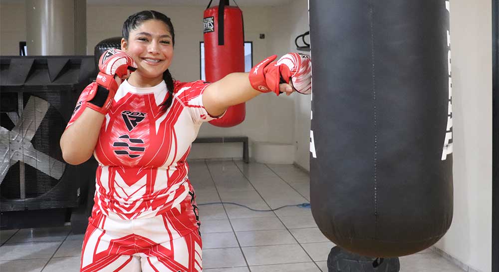 Romina Melissa Yamileth González, estudiante del tercer semestre de preparatoria en el Campus Juan Alonso de Torres de la Universidad La Salle Bajío, conquista el mundo de las artes marciales mixtas (MMA).
