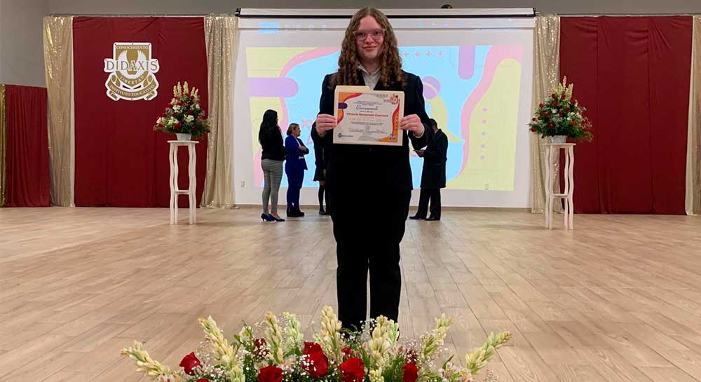 Victoria Navarrete, quien previamente había participado en una eliminatoria interna para representar a su escuela, preparó su discurso con el acompañamiento de su maestra de español, Ana Lilia Ojeda Cobián. Su presentación cautivó tanto al jurado como al público presente, por su claridad y contenido reflexivo.