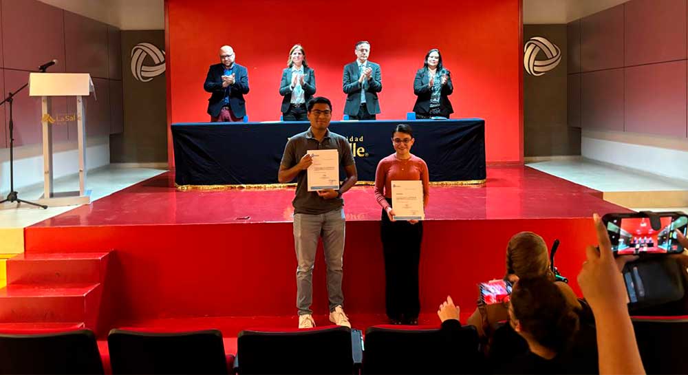 Alfonso Vidal Pantoja, Ma. Raquel Dimas Carrera y María Soto Laguna recibieron sus certificados de la mano del Hno. Enrique Alejandro González Álvarez, Rector de esta Casa de Estudios, así como de la Mesa de Honor. Además, también se reconoció a Guadalupe Negrete Toledo, María Camila Ponce y a Cesar Arturo Guerra Rangel: alumnos de Licenciatura que brindaron parte de su conocimiento para asesorar a los Colaboradores.
