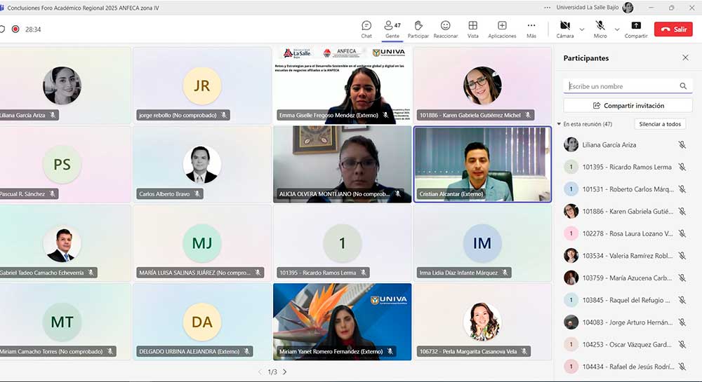Este encuentro, organizado por la Facultad de Negocios de la Universidad La Salle Bajío, Campus Campestre, se realizó de manera virtual y contó con la participación de 88 docentes provenientes de 21 instituciones educativas y la presentación de cinco ponencias.