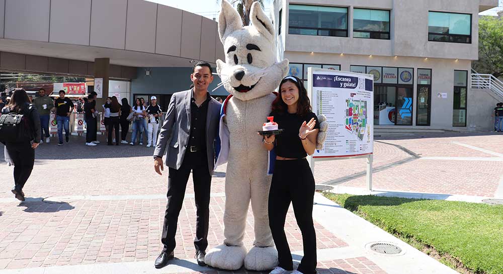 Asimismo, Saúl Falcón Velázquez, Presidente del Consejo Estudiantil del Campus Campestre, acompañó a Felino al recorrido; junto al grupo estudiantil “Felinos” que obsequió al cumpleañero un delicioso pastel, con el que pudo pedir un deseo y apagar su velita.