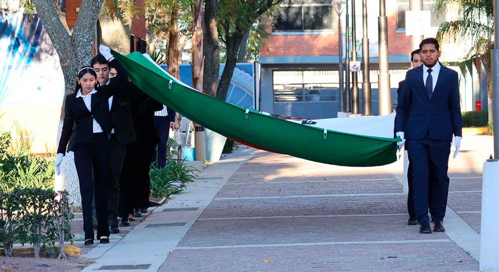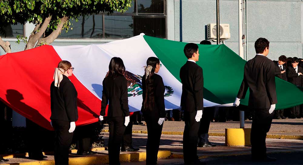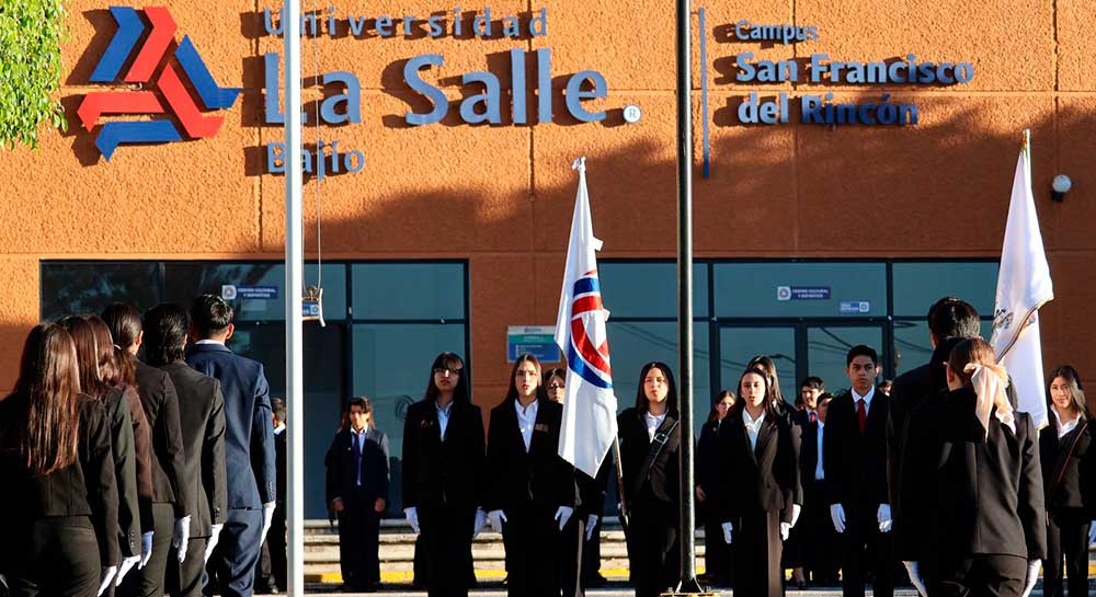 El Campus San Francisco del Rincón de la Universidad La Salle Bajío, llevó a cabo un acto cívico en conmemoración del Día de la Bandera. La ceremonia se realizó en el auditorio de la institución y contó con la presencia de estudiantes de preparatoria y secundaria, quienes participaron activamente.