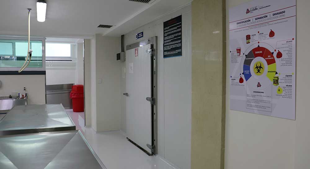 Otras adecuaciones fueron la instalación de mangueras para lavado de mesas; colocación de piso epóxico para mejorar la durabilidad y limpieza del espacio; la optimización de la cámara frigorífica para el adecuado almacenamiento de materiales y especímenes; vestidores para el confort de las y los estudiantes, así como del personal; al igual que la instalación de un proyector audiovisual para la enseñanza interactiva.