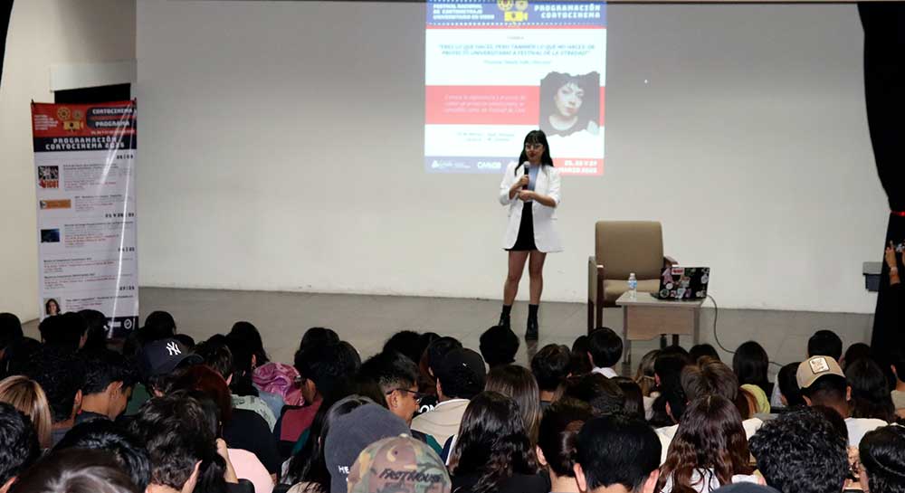 “Tengo más de un año planeando esta charla, porque necesitaba decirles a ustedes jóvenes que no hay mejor momento que la universidad para sacar sus proyectos. Si tienen miedo, háganlo con miedo, pero háganlo; somos lo que hacemos, pero también lo que no hacemos y de eso va esta charla”, compartió la también gestora cultural que hace unos años asistiera al festival, pero como estudiante.
