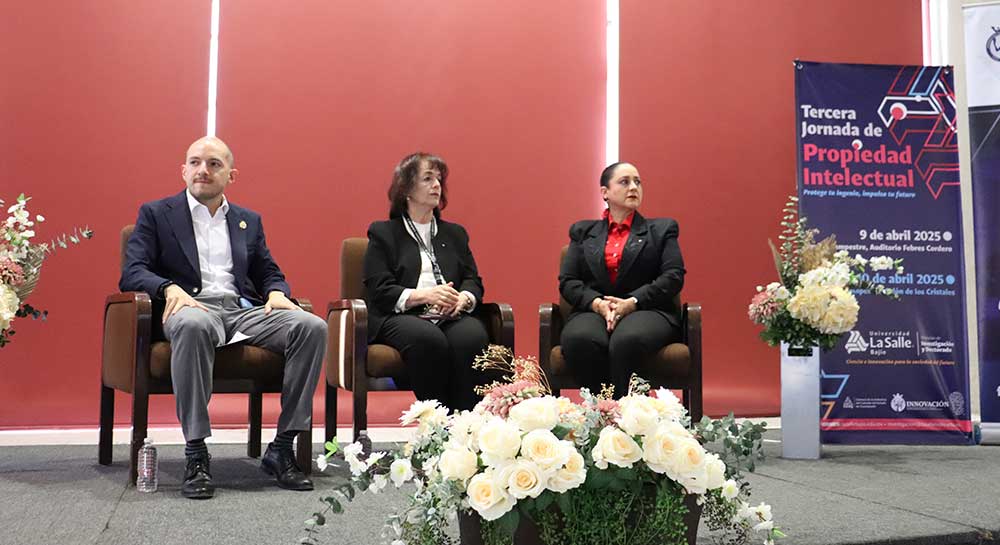 Por otra parte, el acto inaugural del segundo día de la Tercera Jornada contó con la presencia de las siguientes autoridades: Juan Antonio Reus Montaño, Director General del Instituto de Innovación, Ciencia y Emprendimiento para la Competitividad; la Mtra. Ma. Socorro Durán González, Vicerrectora de la Universidad La Salle Bajío, y la Mtra. Patricia Villasana Ramos, Directora de Investigación y Doctorado. En sus intervenciones, subrayaron la importancia de trabajar en comunidad para proteger las invenciones y las patentes que se desarrollan desde la academia.