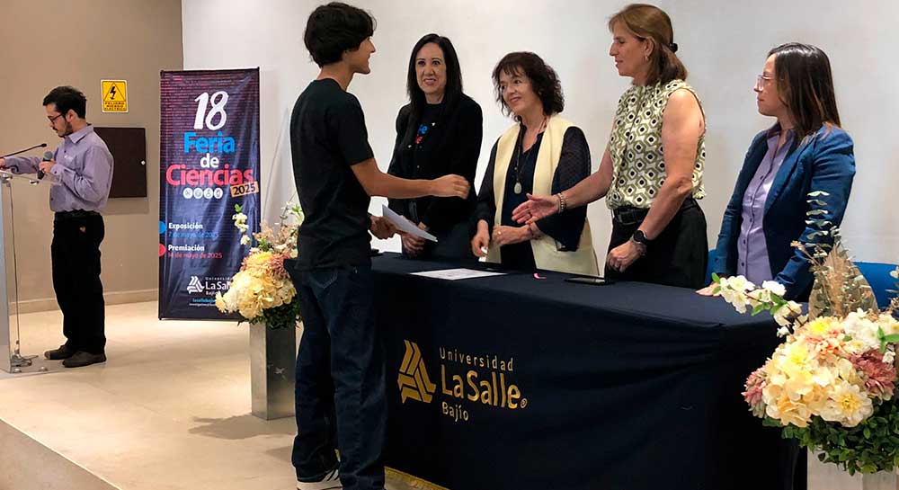 El Auditorio Febres Cordero fue el escenario donde se realizó la premiación de la 18ª Feria de Ciencias 2025, un concurso organizado a través de la Dirección de Investigación y Doctorado de la Universidad La Salle Bajío, para reconocer el talento, la creatividad y el compromiso científico y tecnológico de sus estudiantes de bachillerato.