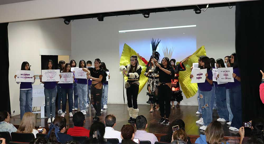 Además, la Secundaria General No. 27 “Inés María Gasca Solórzano” presentó un número artístico con su rondalla y un performance enfocado en la equidad de género, resaltando temas de inclusión y justicia social.