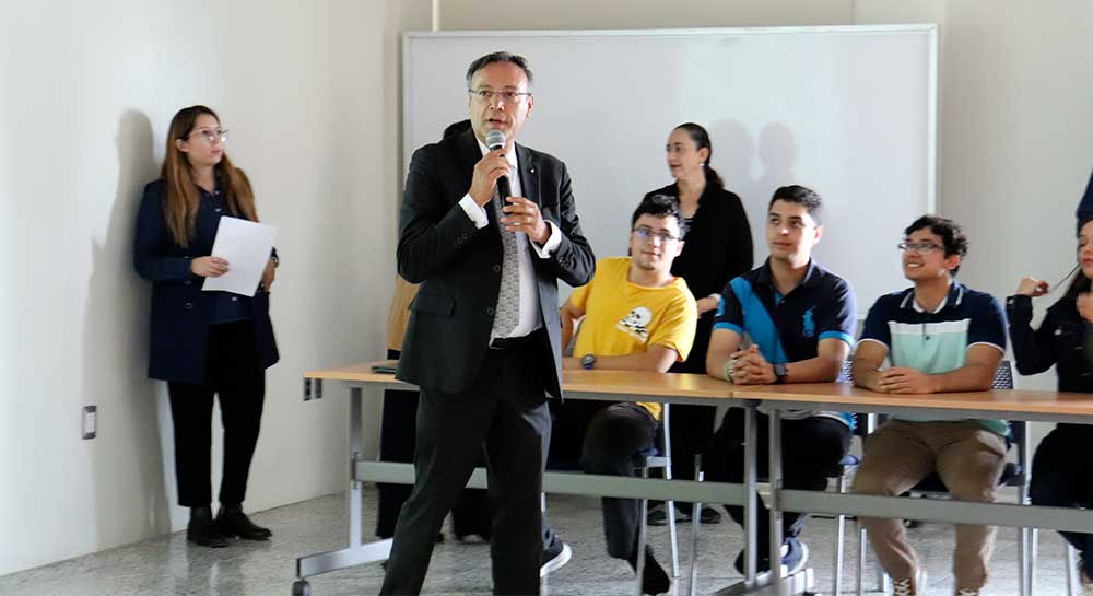 Las autoridades universitarias dieron la bienvenida a las y los 42 estudiantes (33 en modalidad presencial y nueve virtual) que integran el equipo de estancias de investigación Verano Delfín 2025 en la Universidad La Salle Bajío.