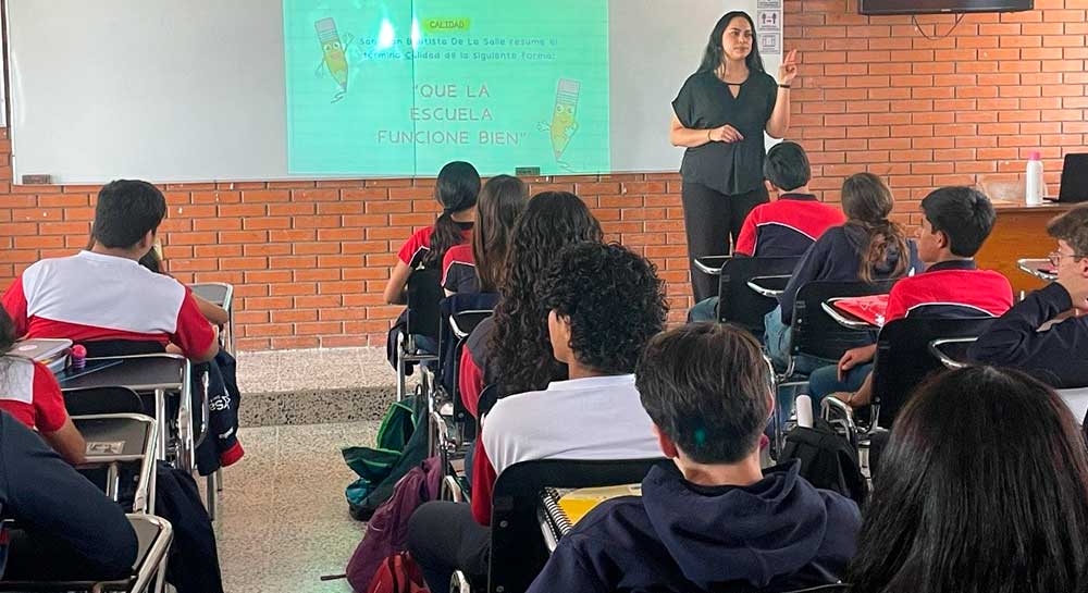Las actividades académicas y formativas incluyeron talleres de justicia y paz, integridad académica, filosofía lasallista y protocolos de comunidad segura, además de presentaciones de coordinaciones, equipo de orientación y demás áreas de apoyo. Las y los estudiantes también recorrieron laboratorios, aulas STEM, la biblioteca y espacios de uso cotidiano, con el fin de familiarizarse con su entorno escolar.