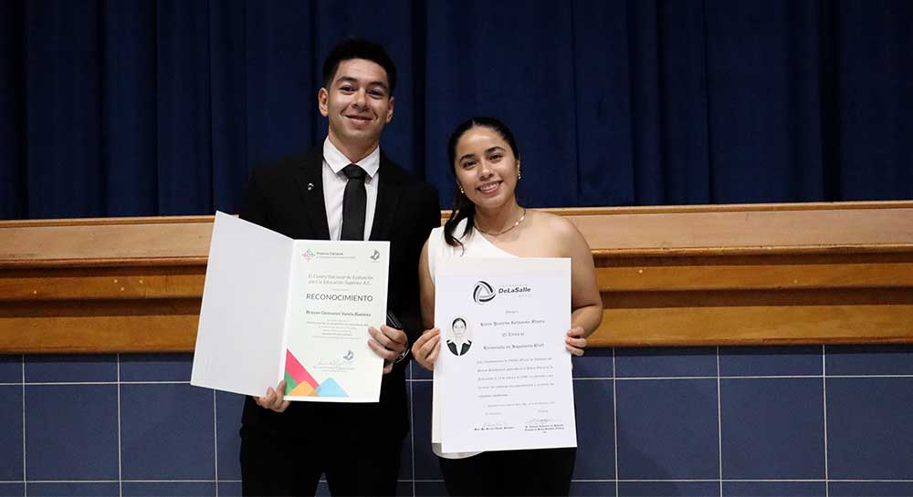 Un momento especial se vivió con la entrega del Premio CENEVAL al Desempeño de Excelencia-EGEL, otorgado a dos egresados que lograron resultados sobresalientes en el Examen General de Egreso de Licenciatura. En esta edición, fueron reconocidos Luis Martín Mendoza Fuentes, de la Facultad de Agronomía y Brayan Geovanni Varela Ramírez, de la Facultad de Ingenierías y Tecnologías, quienes recibieron el distintivo por su excelencia académica.