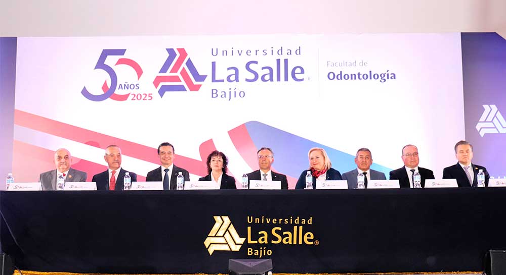 Este jueves 21 de agosto, la Universidad La Salle Bajío estuvo de manteles largos para celebrar el aniversario de oro de la Facultad de Odontología de esta casa de estudios. A la ceremonia, con sede en el Parque de Innovación del Campus Campestre, se dieron cita representantes del gremio odontológico de todo el país, así como autoridades universitarias y personalidades que forjaron los 50 años de historia de este centro educativo.