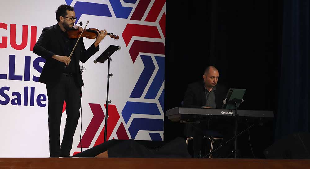 El Dúo Chakté, conformado por Andrés y Adalberto Tovar, deleitó al público con un repertorio que combinó piezas clásicas y contemporáneas. Con especial orgullo, se destacó que Andrés Tovar es egresado de la Licenciatura en Diseño Ambiental, lo que hizo aun más significativo este momento artístico.
