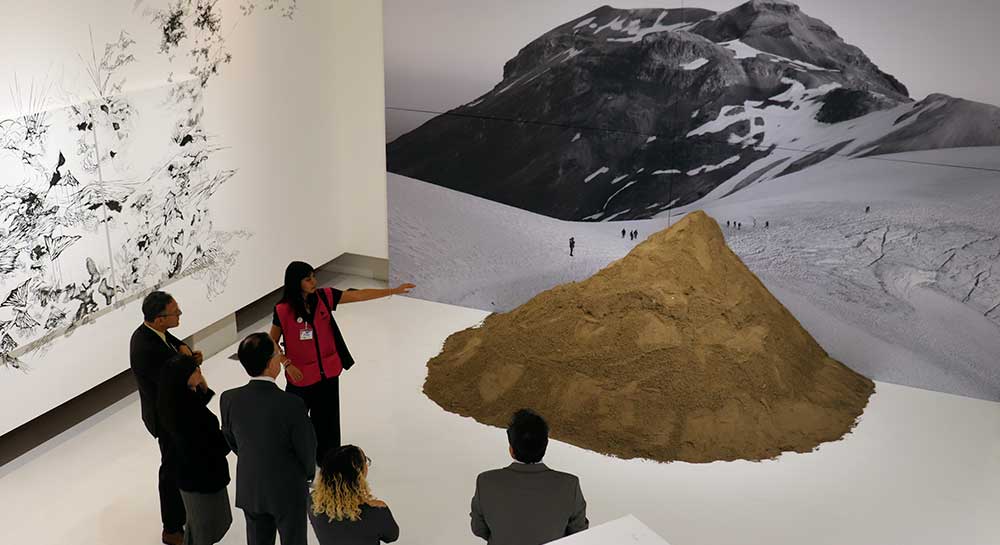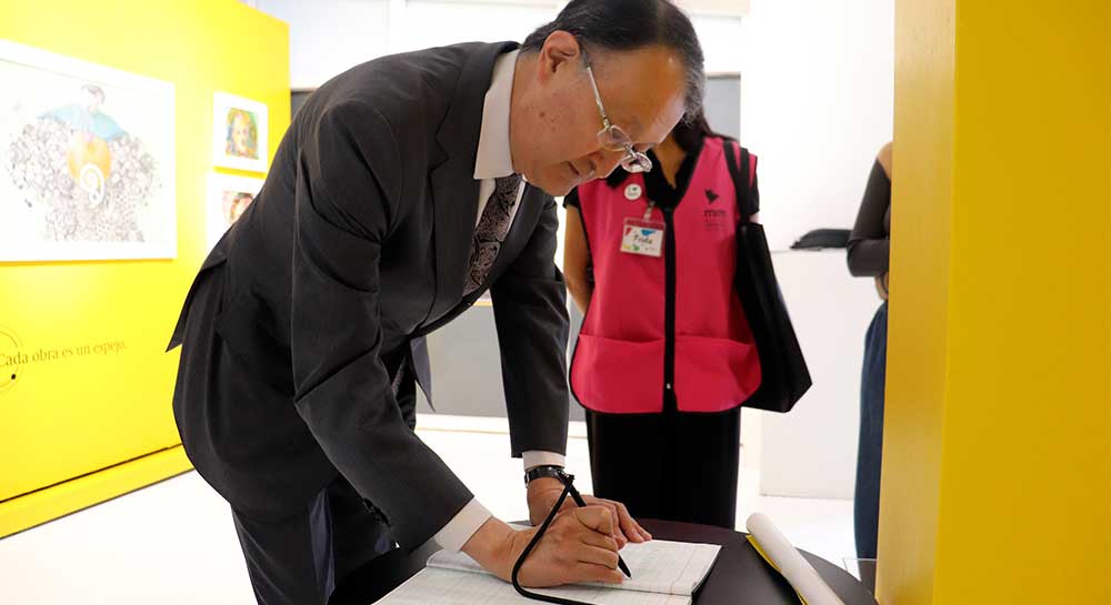 Asimismo, compartió que sus pinturas favoritas fueron las de la técnica al óleo, sobre todo, las que plasman caballos. Antes de partir de la sala, dejó un mensaje al artista Eiki Ito, en su propio idioma. Además, manifestó a las autoridades universitarias su interés de exponer su obra en el MiM.
