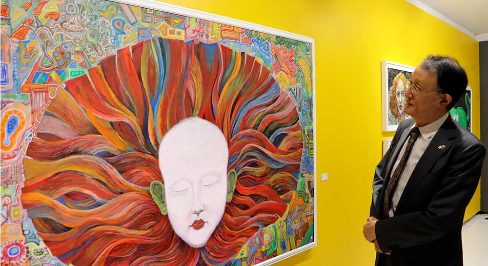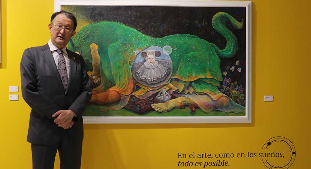 Durante el recorrido, el cónsul admiró la propuesta estética de Eiki Ito, marcada por la exploración de lo enigmático y lo simbólico. Su mirada como pintor aportó un matiz distinto, pues enriqueció la lectura de las obras y conectó la experiencia artística con su propia sensibilidad pictórica. Destacó que la obra del maestro Eiki es “muy detallada”.