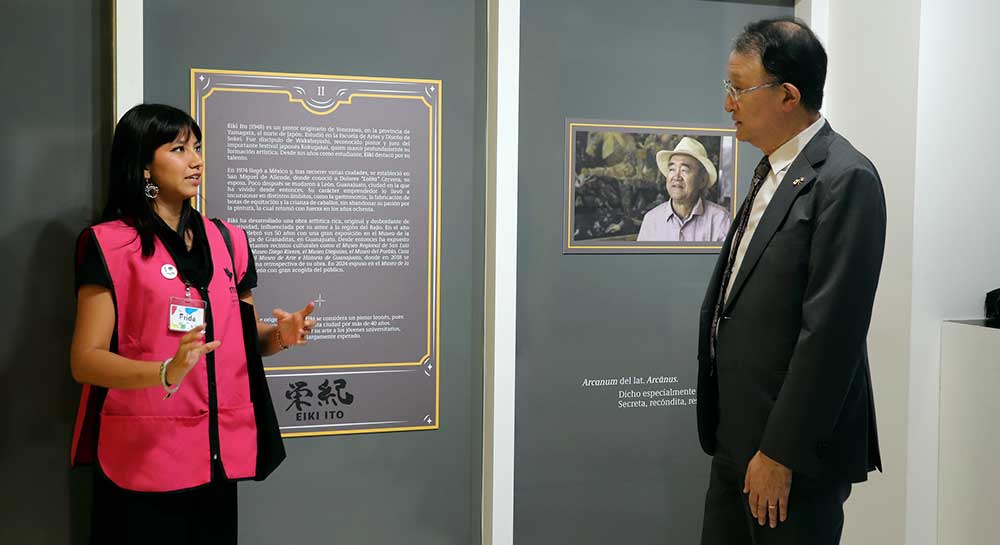 El arte tendió un puente entre Japón y Guanajuato con la visita del Cónsul general de Japón en León, Takero Aoyama, a Mi Museo Universitario La Salle (MiM), para recorrer la exposición Arcanum, los misterios de Eiki Ito, un montaje que reúne más de 20 obras de dibujo y pintura del artista japonés radicado en León desde 1974.