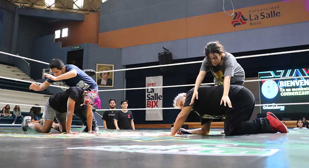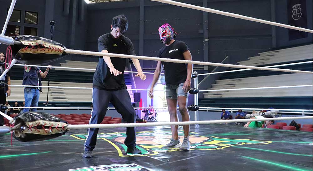 Y qué más mexicano que la lucha libre. Por ello, una compañía de Lucha Libre profesional impartió al estudiantado un taller de este espectacular deporte, para culminar con una exhibición del mismo.