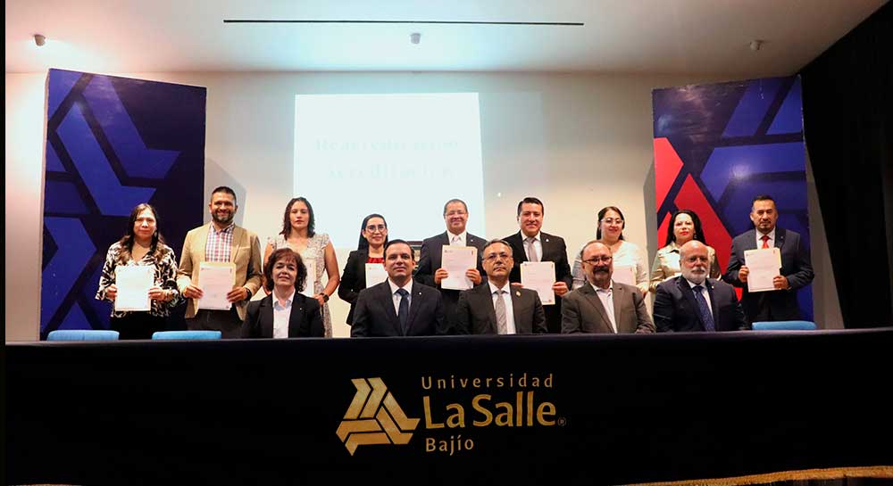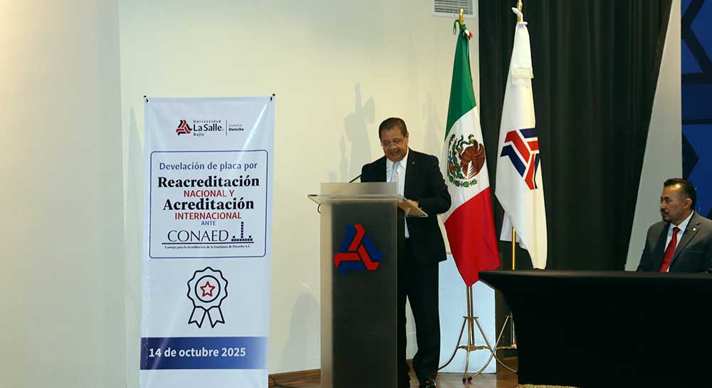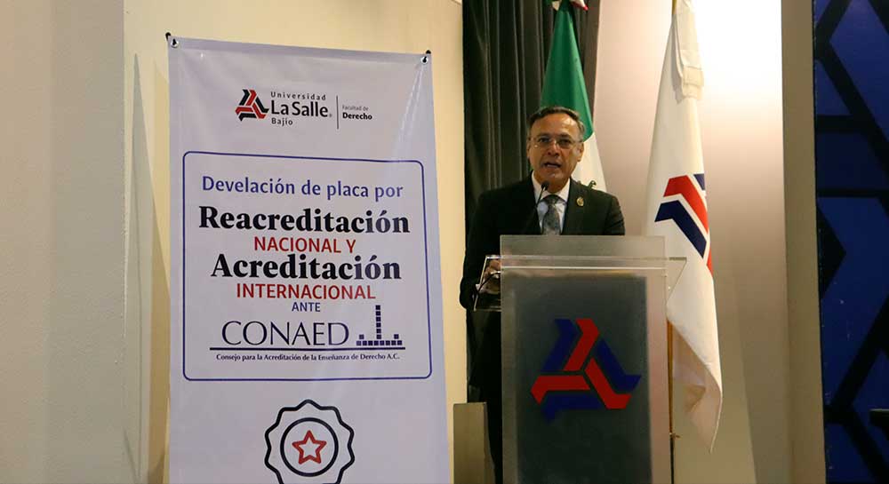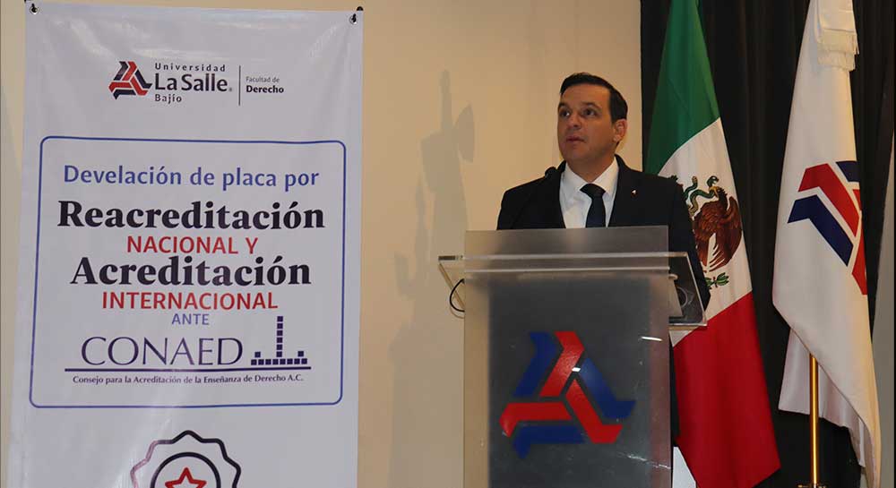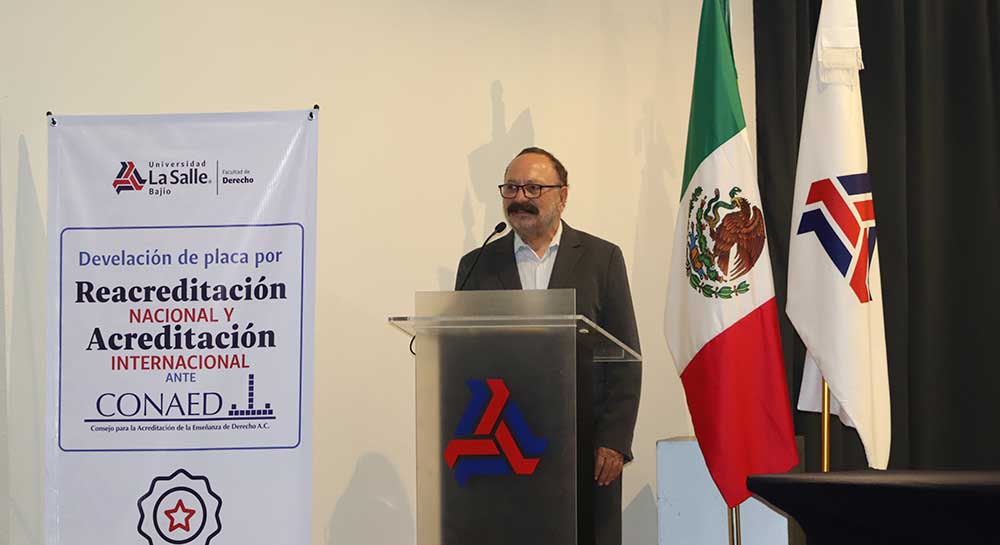 Con una profunda emoción y orgullo institucional, la Universidad La Salle Bajío llevó a cabo la develación de la placa conmemorativa por la Primera Acreditación Internacional y la Cuarta Acreditación Nacional de su programa de Licenciatura en Derecho, otorgadas por el Consejo Nacional para la Acreditación de la Educación Superior en Derecho (CONAED), organismo reconocido por la Secretaría de Educación Pública (SEP). Un hito para la Facultad de Derecho que se convierte en la primera del Estado en tener esta acreditación internacional.