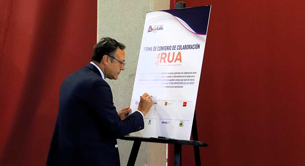 Con el propósito de fortalecer la vida cultural y el intercambio creativo entre instituciones de educación superior, la Red Universitaria de las Artes (RUA) celebró la renovación de su Convenio de Colaboración, con el que reafirmó su compromiso con la promoción del arte y la cultura universitaria. El acto marca también el relevo en la coordinación de la Red, que ahora estará a cargo de la Universidad La Salle Bajío, representada por el Mtro. Ulises Montes, Coordinador de Desarrollo y Gestión Cultural. Asimismo, se presentó el programa oficial del Festival Universitario de las Artes 2025 que constará de 40 actividades.