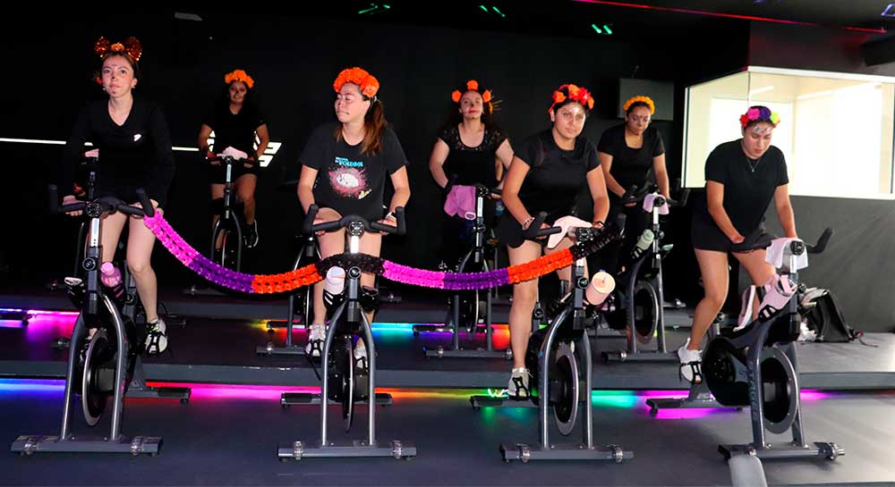 El espíritu del Día de Muertos se adueñó del gimnasio universitario durante la Súper Clase de Spinning 2025, realizada en la Sala de Indoor Cycling del nuevo Gimnasio de Pesas. Dos sesiones reunieron a 30 participantes que con energía y entusiasmo dieron vida a una jornada donde el ejercicio, la música y la tradición mexicana se unieron en perfecta sincronía.