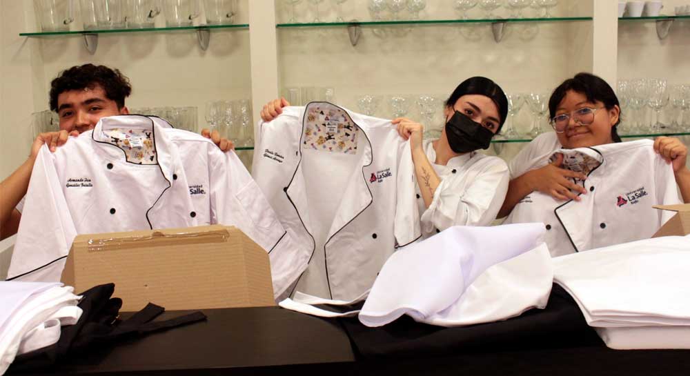 El Laboratorio de Mixología fue el escenario perfecto para este emotivo momento, en el que los estudiantes se mostraron entusiasmados ante la entrega de su tan anhelado uniforme. En el acto se contó con la presencia de la Mtra. Xóchitl Caballero Fuentes, coordinadora del área de Servicios, así como del Chef Carlos Chimal, quien dirigió un mensaje inspirador a los alumnos. En su intervención habló sobre la importancia de la puntualidad y el compromiso.