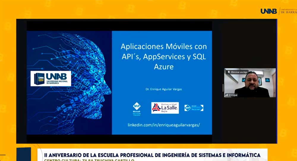 La Universidad La Salle Bajío fortaleció su proyección internacional mediante la participación del Dr. Enrique Aguilar, director de la Facultad de Ingenierías y Tecnologías, como ponente invitado en una videoconferencia dirigida a estudiantes de la Universidad Nacional de Barranca del Perú. La sesión virtual, reunió a la comunidad académica de la Escuela Profesional de Ingeniería de Sistemas e Información para profundizar en tendencias actuales del desarrollo de software.