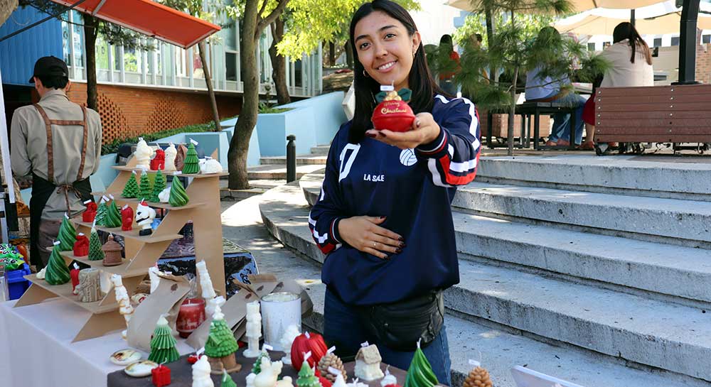 También se instaló entre Mi Museo Universitario La Salle y el pasillo del Centro de Lenguas del Campus Campestre, a donde la Comunidad universitaria acudió para conocer las propuestas, adquirir productos y dialogar con las y los expositores de giros como alimentos, repostería, arte, impresión, cuidado personal, marroquinería y accesorios; en especial, los navideños, como el emprendimiento de los hermanos Ríos, egresada y estudiantes de esta institución. Fernanda Ríos, señaló que Korell velas nació gracias a la habilidad de su familia por las manualidades.