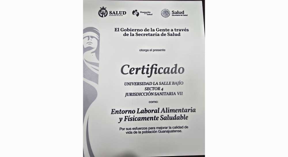 El Campus Américas de la Universidad La Salle Bajío recibió la certificación como “Entorno Laboral Alimentaria y Físicamente Saludable”, un reconocimiento otorgado por la Secretaría de Salud del Estado de Guanajuato este 26 de enero. Esta distinción avala el compromiso institucional con el bienestar integral de su Comunidad laboral y con la creación de espacios seguros, saludables y favorables para el desarrollo humano.
