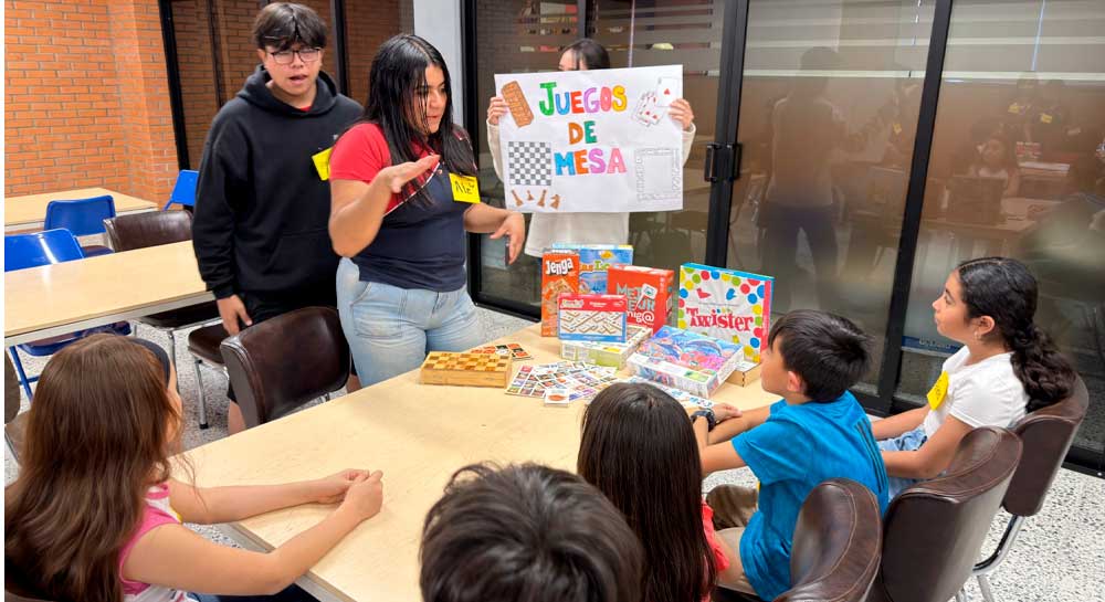 Esta actividad, realizada desde hace tres años, contó con cinco talleres impartidos por estudiantes del Campus Américas. Las dinámicas variaron entre inglés, arte, pintura en madera, manualidades, ajedrez y juegos de mesa.