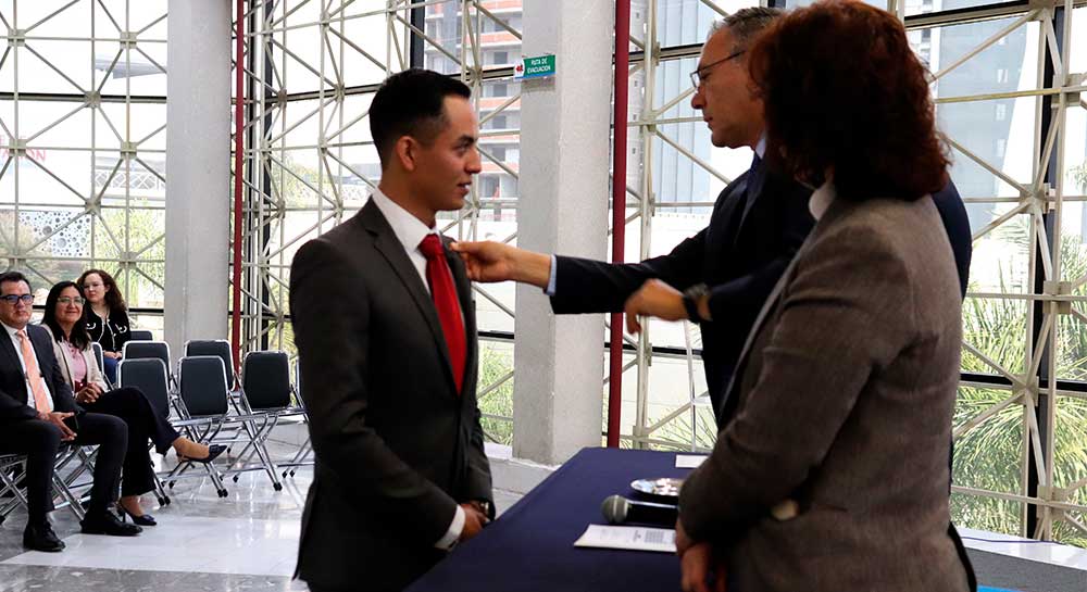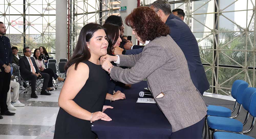 Como parte del protocolo, se realizó la imposición de la insignia lasallista a las y los integrantes de la planilla roja, símbolo del compromiso adquirido con la representación estudiantil y con los valores de Fe, Fraternidad y Servicio que distinguen a la Comunidad Lasallista.