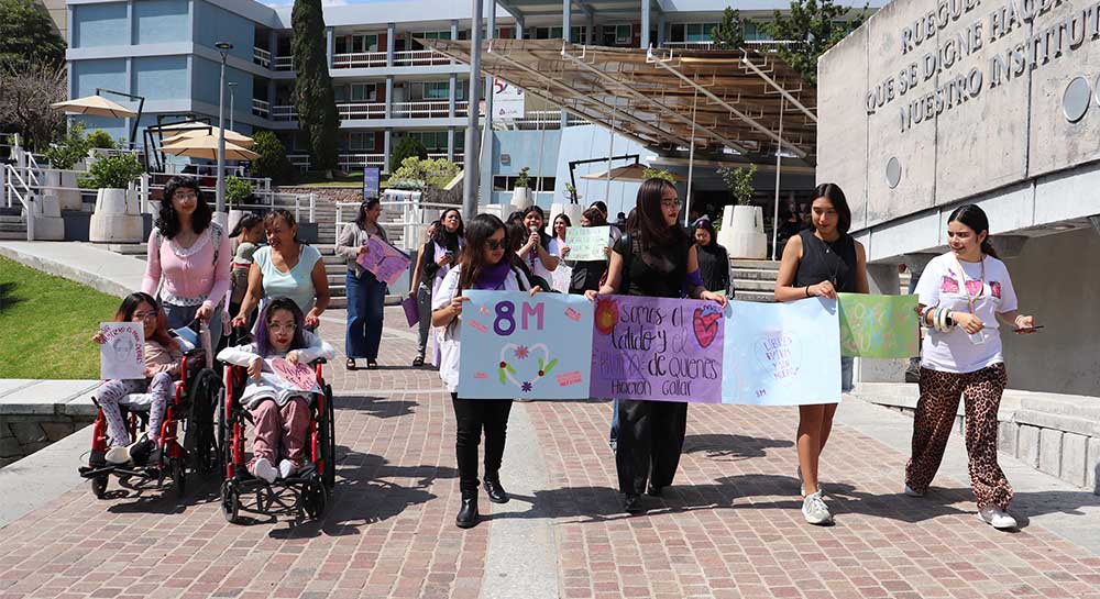 Las actividades concluyeron con una Marcha interna, en la que estudiantes y colaboradoras expresaron mensajes de igualdad, justicia y respeto, con lo que se reafirmó el compromiso con la construcción de una Comunidad más consciente, incluyente y solidaria con las luchas y derechos de las mujeres.