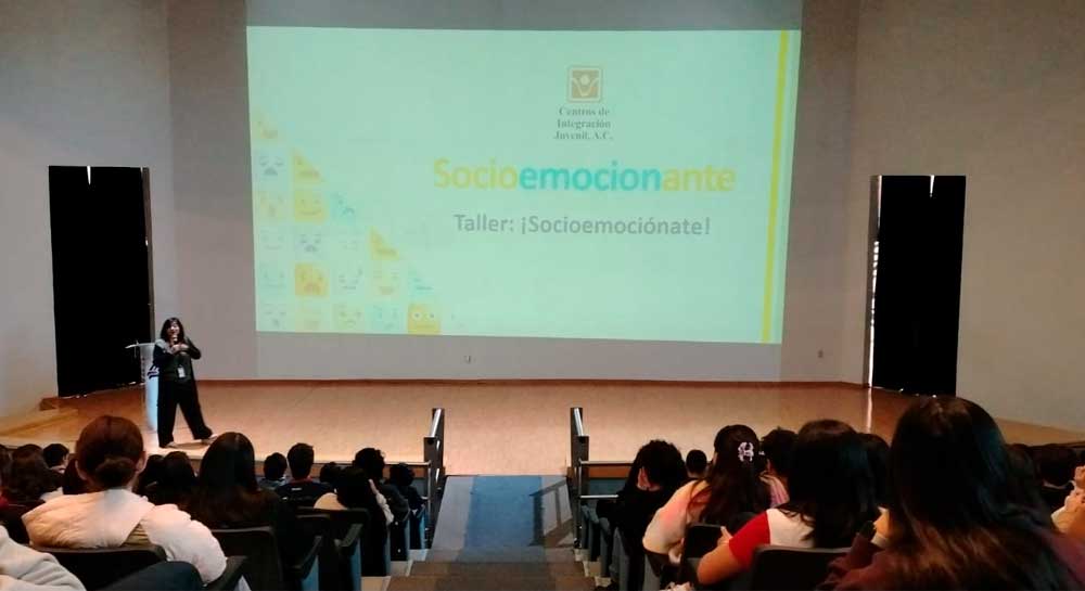 El estudiantado de segundo semestre de preparatoria del Campus Juan Alonso de Torres de la Universidad La Salle Bajío asistió a la conferencia Habilidades Socioemocionales, impartida por integrantes de los Centros de Integración Juvenil y coordinada por el Departamento de Orientación Psicoeducativa del Campus.