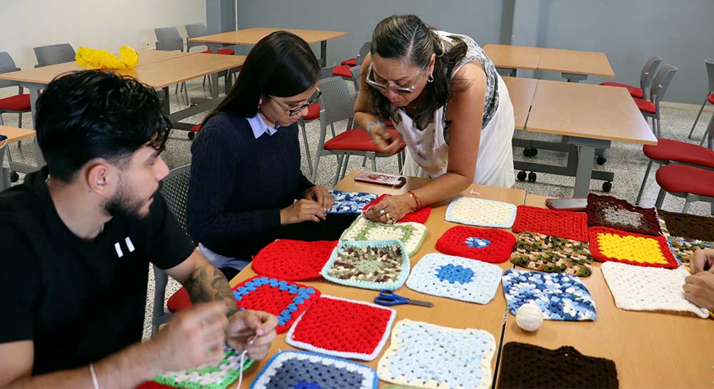 El taller consistió en la unión de cuadros de tela de 20 x 20 centímetros mediante la técnica de hilvanado, los cuales se integran para formar cobijas que posteriormente se donan a instituciones y organizaciones de la sociedad civil que atienden a personas en situación de vulnerabilidad. Esta iniciativa, que reúne esfuerzos de voluntarias y voluntarios de distintos estados, representa una red de apoyo que se fortalece con la participación de la comunidad universitaria.