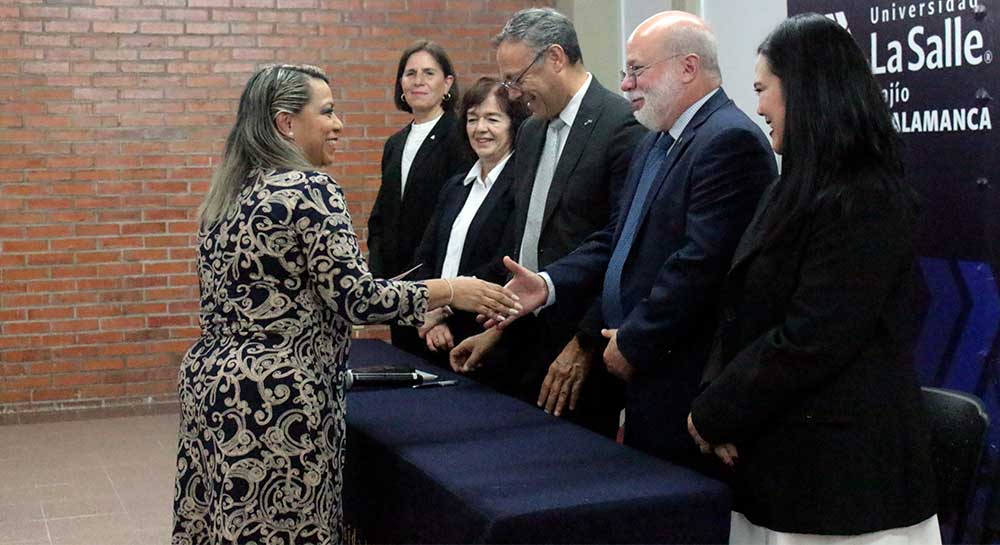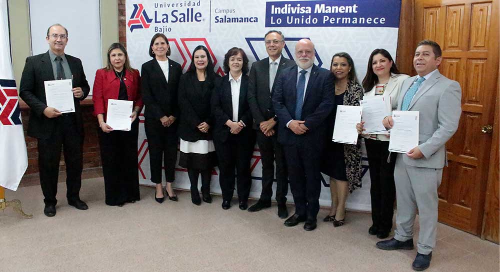 En este acto protocolario se contó con la presencia del Hno. Enrique Alejandro González Álvarez, rector de esta casa de estudios; la Mtra. Ma. Socorro Durán González, vicerrectora académica; el Hno. Roberto Medina Luna Anaya, vicerrector de Bienestar Universitario; la Ing. Edel María Espino Ledezma, directora general del campus Salamanca; y la Mtra. Perla Esperanza Rostro Hernández, directora de la Facultad de Estudios Superiores.